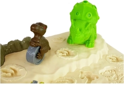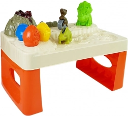 Stôl ponúka vulkán so svietiacou lávou pre ďalšiu úroveň hry. Súčasťou sú tri vajíčka, ktoré ukrývajú malého dinosaura, a tri väčšie prehistorické zvieratá pre precízne vykrajovanie a otláčanie motívov. Tým sa rozvíja jemná motorika a vizuálna koordinácia detí.