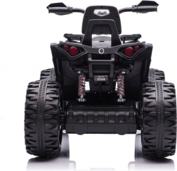 Štvorkolka je vybavená veľkými robustnými kolesami, ktoré poskytujú stabilitu a bezpečnosť pri jazde na nerovnom povrchu.
