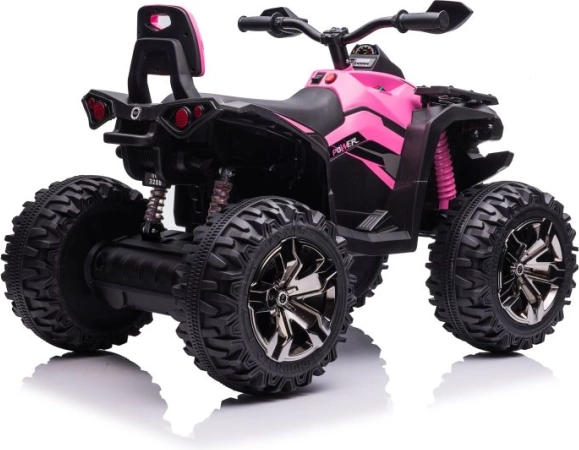 Táto ružová elektrická štvorkolka pre deti je skvelým spoločníkom na záhradu aj do parku. Vďaka robustnému podvozku, širokým pneumatikám s výrazným dezénom a pohodlnému sedlu zvláda nerovný terén s prehľadom. Realistické detaily, ako sú LED svetlá a športový vzhľad, umocňujú zážitok z jazdy.