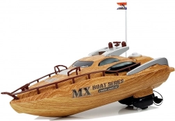 Jednodielny plastový trup zabezpečuje spoľahlivú vodotesnosť, takže sa môžete sústrediť iba na jazdu. Dva výkonné motory dodávajú člnu dynamiku na rýchle štarty aj obratné manévre. Ovládač v tvare kormidla pracuje na frekvencii 27 MHz a s výsuvnou anténou poskytuje istý dosah až 40 m.