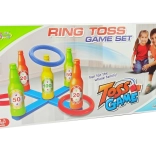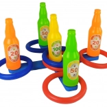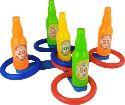 Zábavná rodinná hra hádzanie krúžkov s piatimi farebnými fľaštičkami a bodovým skóre rozvíja presnosť, koordináciu oko–ruka a motivuje deti k aktívnemu pohybu vonku aj doma. Jednoduché zostavenie, 6 krúžkov v dvoch farbách a množstvo variantov súťaží pre malých aj veľkých.