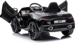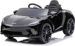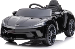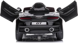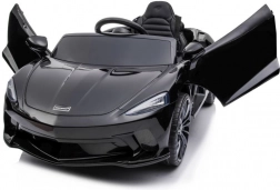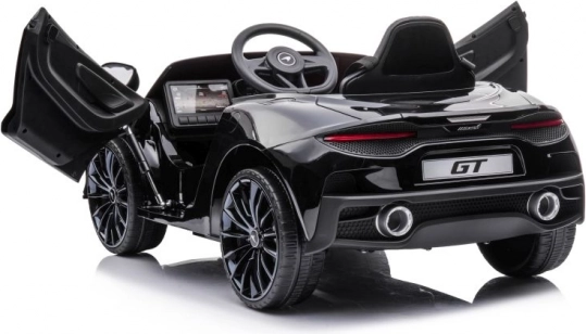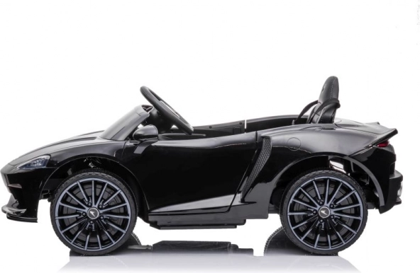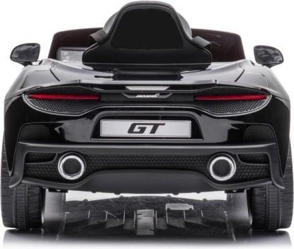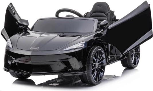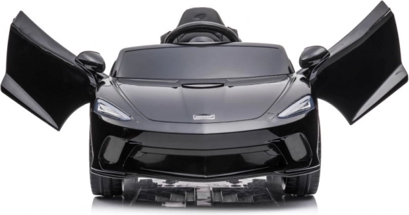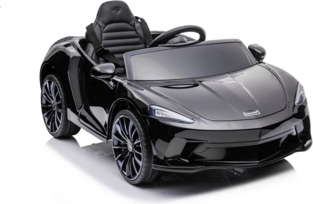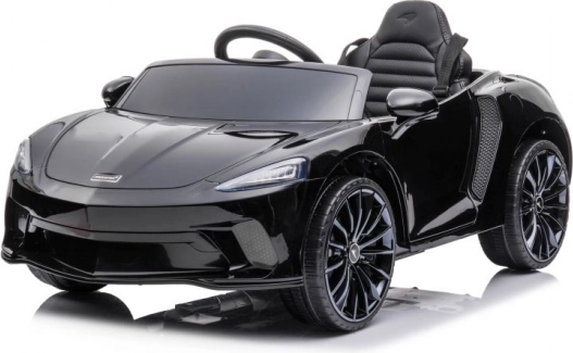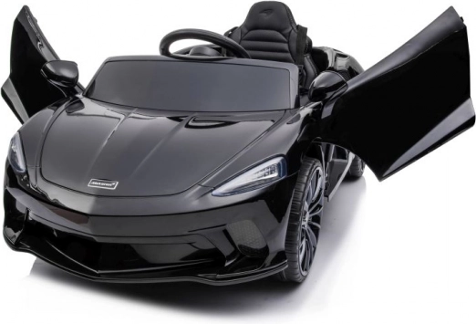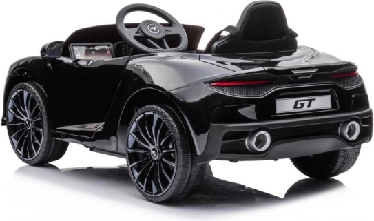 Čierne auto McLaren GT pre deti napodobňuje vzhľad skutočných športových áut so všetkými detailmi.