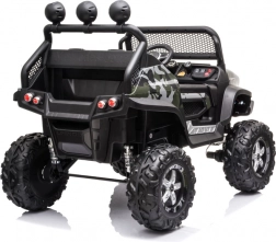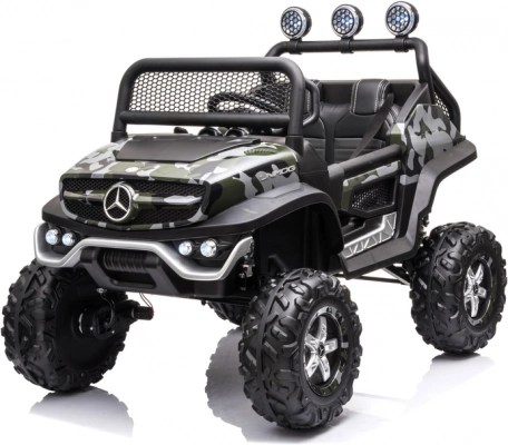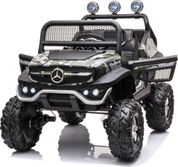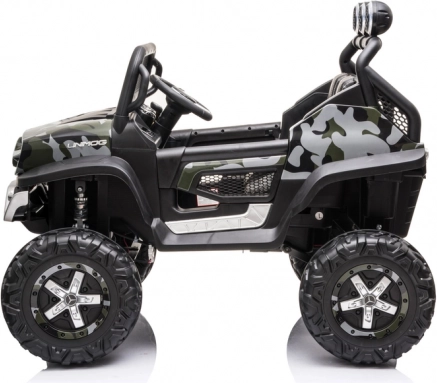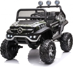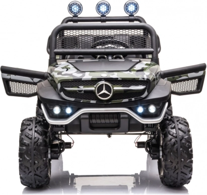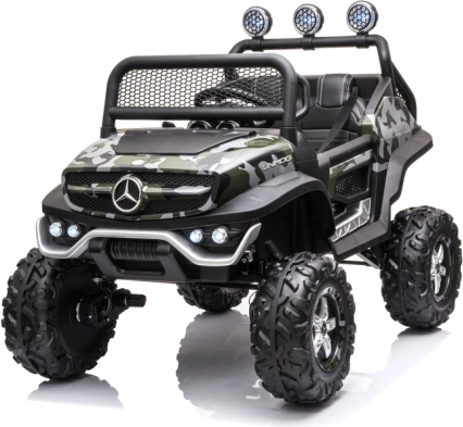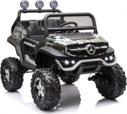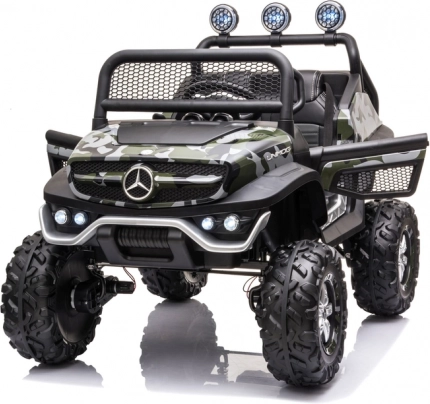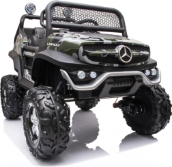 Elektrické auto Unimog S pre deti je ideálny dopravný prostriedok pre malých dobrodruhov s robustným dizajnom a maskáčovou farbou, ktorá zaisťuje realistický vzhľad.