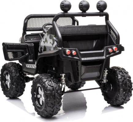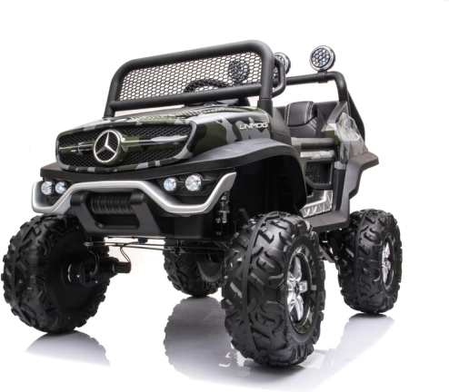 Toto elektrické detské auto Unimog S je perfektnou voľbou pre malých vodičov, ktorí túžia po dobrodružstve a zábave na čerstvom vzduchu. Ponúka realistický vzhľad vďaka maskáčovej farbe a zaujímavým detailom: