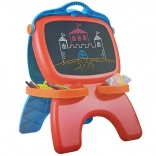 Táto detská obojstranná tabuľa kombinuje magnetickú bielu plochu na fixky a čiernu kriedovú plochu, takže deti môžu písať, kresliť a učiť sa každý deň inak. Modro-červené prevedenie zapadne do každej detskej izby a stabilná konštrukcia so zásuvkami udrží všetky pomôcky pekne po ruke.