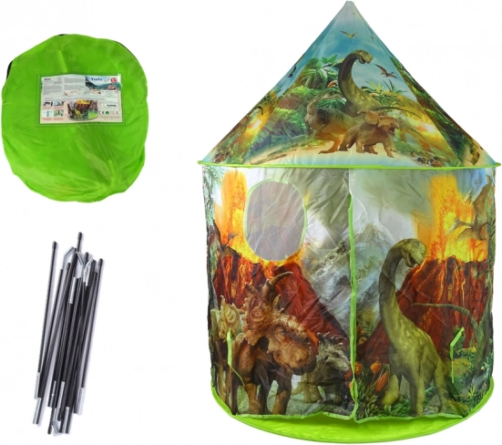 Objavte čarovný úkryt pre malých dobrodruhov – detský stan s motívom dinosaurov v zelenej farbe. Ponúka rýchlu a jednoduchú montáž, bezpečnú a pohodlnú hru doma aj na záhrade a vďaka stabilnému rámu a vodoodolnej polyesterovej tkanine je ideálny na každodennú zábavu. Dve sieťované okienka a rolovací vchod na suchý zips zabezpečujú cirkuláciu vzduchu a pohodlie.