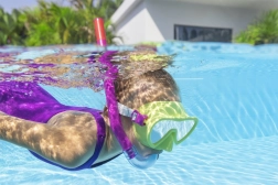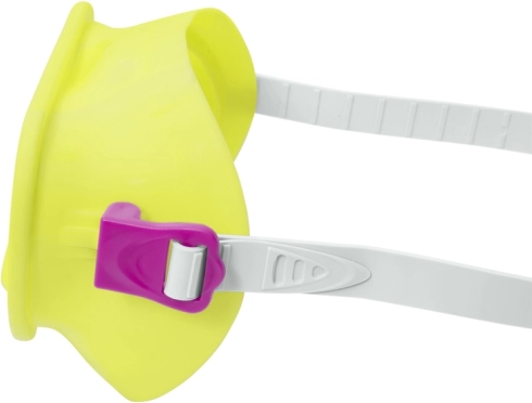 Číre šošovky s UV ochranou a mäkké tesnenie okolo tváre bránia vnikaniu vody. Nastaviteľný hlavový remienok udrží masku stabilne na mieste aj pri šantení vo vode.