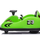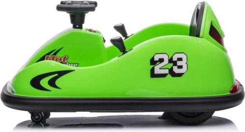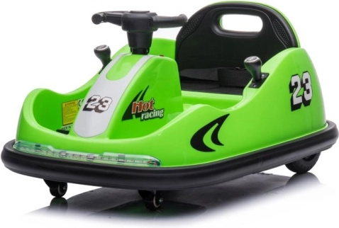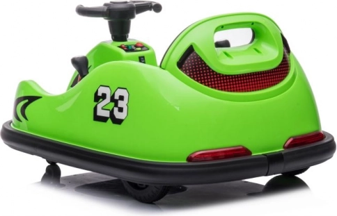 Toto zelené nárazníkové autíčko s číslom 23 a pretekárskymi prvkami je skvelé pre prvé jazdné zážitky. Robustná plastová karoséria s mäkkými okrajmi pomáha tlmiť nárazy a zvyšuje bezpečnosť pri hre. Jednoduché ovládanie volantom a prehľadný panel sú prispôsobené deťom.