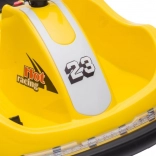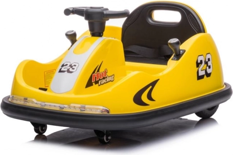 Zábavné detské elektrické autíčko v štýle bumper car prináša bezpečnú jazdu doma aj vonku. Má pohodlné sedadlo s bezpečnostným pásom, jednoduché ovládanie volantom/joystickom a odolnú plastovú konštrukciu. Vďaka dizajnu s číslom 23 a nápisom „Hot Racing“ poteší malých pretekárov a ponúkne stabilnú jazdu aj jednoduché ovládacie prvky (On/Off, vpred/vzad, rýchlosť).