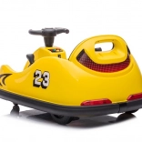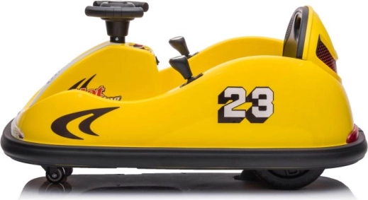 Žlté elektrické autíčko typu bumper car je ideálne na prvé vodičské zážitky. Kompaktná konštrukcia, nízke ťažisko a obvodový nárazník pomáhajú udržať stabilitu a chrániť pri hrách na naháňačku aj pri otáčaní na mieste. Sedadlo s bezpečnostným pásom a prehľadné ovládanie umožnia deťom jazdiť pohodlne a rodičom prinášajú pokoj.