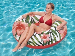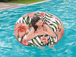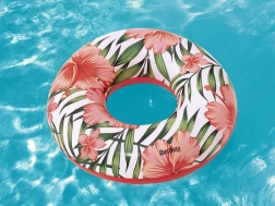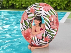 Užite si leto s plávacím kruhom BESTWAY s priemerom 119 cm s tropickým kvetinovým motívom. Odolný z PVC, vhodný pre mládež 12+ aj dospelých, ideálny do bazéna, na pláž aj na jazero. Ľahké nafukovanie a vyfukovanie, bezpečnostný spätný ventil a kompaktné balenie na cesty.