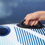 Praktické funkcie zahŕňajú sieťované dno pre príjemné ochladenie a dva držiaky na nápoje pre ľahké uchytenie drinkov. Bezpečnostné lano okolo kresla s prievlakmi a úchyty je skvelé pre transport aj zábavu. Po vyfúknutí kreslo ľahko zbalíte do batohu alebo tašky!