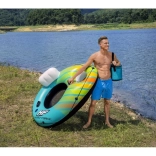 Odolná PVC konštrukcia je pripravená na letnú sezónu a zvládne zaťaženie až 90 kg. Súčasťou balenia je aj opravná záplata na rýchlu údržbu a praktická taška/chladiaca kapsa, do ktorej uložíte osvieženie na celé popoludnie.