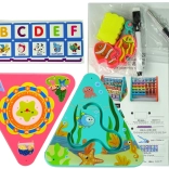 Vzdelávacia polička pre deti pomáha deťom objavovať svet pomocou rôznych hier. Rozvíja manuálne schopnosti a predstavivosť dieťaťa mnohými spôsobmi. Podporuje jeho *výuku počítania* a *poznávanie písmen*. Je to veľmi užitočná hračka pri prvých krokoch do školského života.