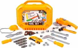 Detská sada náradia je navrhnutá pre malých kutilov, ktorí chcú napodobňovať mamu alebo ocka pri práci v dielni aj na záhrade. Všetky prvky sú z odolného plastu, bezpečné na hru a ľahko sa ukladajú do pevného kufríka. Brúska po stlačení tlačidla otáča kotúčom, ochranná maska má pružnú gumičku, takže sadne každému.