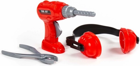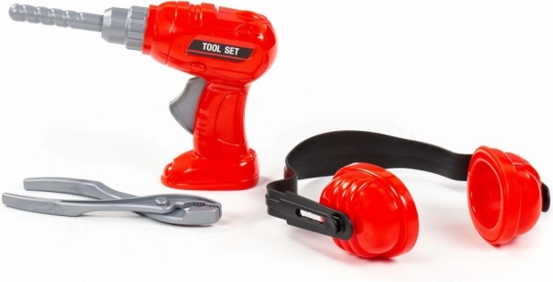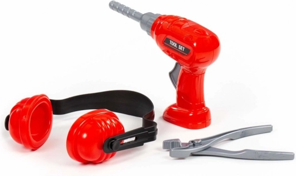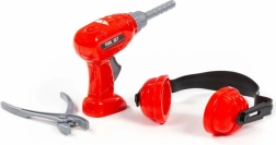 Zábavná detská sada náradia pre malých majstrov obsahuje červenú vŕtačku s rotujúcim vrtákom, chrániče sluchu a kliešte. Ideálna na napodobňovaciu hru, rozvoj jemnej motoriky a kreatívneho myslenia. Vďaka ľahkému plastovému prevedeniu padne do malých detských rúk a zaistí bezpečnú, pútavú zábavu.