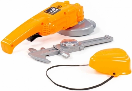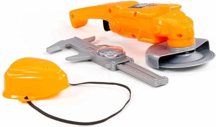 V danej sade sa nachádza brúska, po stlačení tlačidla sa kotúč začne otáčať. Aby sa kutil chránil pred prachom alebo nečistotami, má možnosť nosiť masku. Meradlo vám naopak umožní presne zmerať opracovávanú plochu. Celá sada má oranžovú farbu, ktorá je dokonale prispôsobená malým ručičkám. Sada poskytne mnohým malým pomocníkom veľa zábavy pri kutilských hrách.