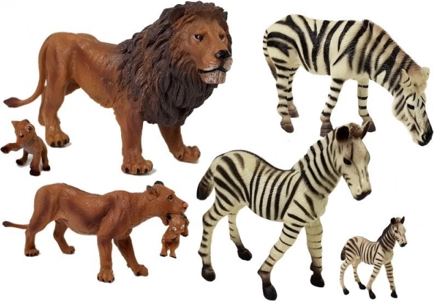 - 7 realistických figúrok – levia rodina a zebry v rôznych veľkostiach