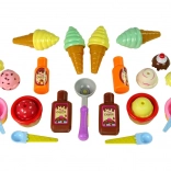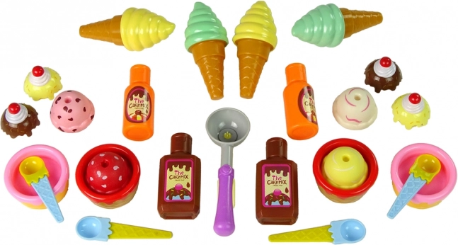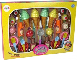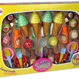 Súprava sladkostí obsahuje farebné košíčky a zmrzliny, ktoré deti zaručene nadchnú. Táto hračka je ideálna pre detské stretnutia a oslavy, kde sa deti môžu tešiť na malú hostinu s lahodne vyzerajúcimi dobrotami v pastelových farbách, ktoré vyzerajú veľmi realisticky. Zahrnuje aj príslušenstvo ako lyžice, poháriky a omáčky, ktoré pomáhajú vytvoriť atmosféru sladkého stretnutia. S pomocou špeciálnej lyžice na zmrzlinu si dieťa môže vytvoriť vlastné zákusky.