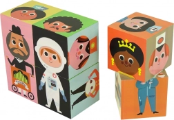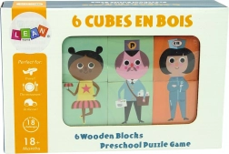 Objavujte svet kreatívnou hrou s našimi drevenými kockami predstavujúcimi rôzne postavy a profesie. Kombinácia farieb a motívov pomôže vášmu dieťaťu lepšie pochopiť tento veľký svet.