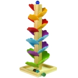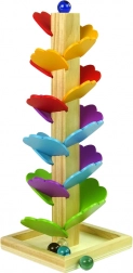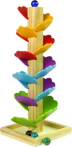 Drevené hračky sú skvelou voľbou pre malé deti vďaka svojej nadčasovosti a odolnosti. Tento strom s dráhou pre guličky je navrhnutý tak, aby pomáhal rozvíjať motoriku, kreatívne myslenie a znalosť farieb. Deti sa naučia presnosti tým, že umiestňujú farebné lístky na správne miesta na strome, zatiaľ čo sledujú cestu guličiek padajúcich dole.