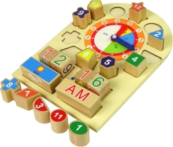 Drevené vzdelávacie hodiny pre najmenších spájajú zábavu a učenie. Pomocou nich sa dieťa naučí rozpoznávať tvary, farby a tiež čítať hodiny. Živé farby stimulujú detskú predstavivosť a kreativitu.