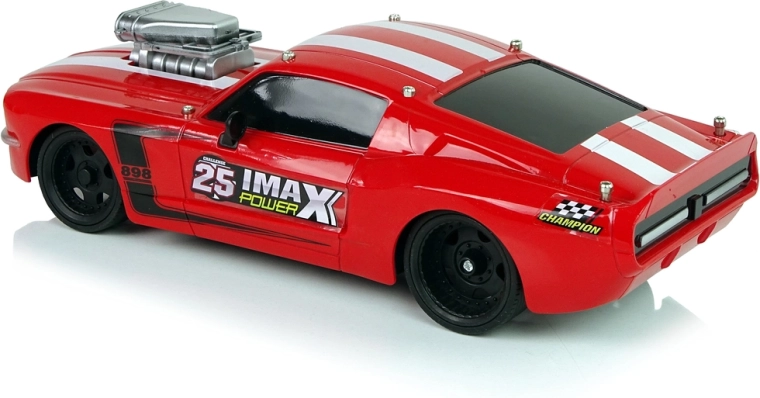 Autíčko má ľahkú a pevnú konštrukciu, športový dizajn s dvoma bielymi pruhmi na streche, strieborný kompresor na kapote autíčka pridáva na efekte. Gumové pneumatiky zaručujú priľnavosť k vozovke pri ovládaní vozidla.
