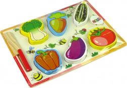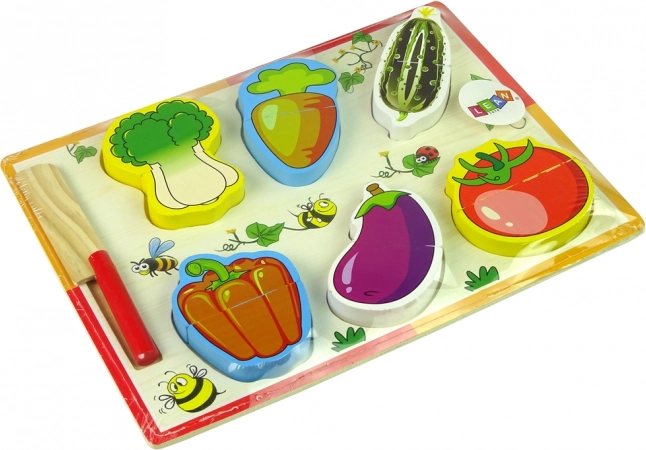 Táto farebná drevená sada zeleniny je rozdelená na polovice a spojená tak, aby sa dala ľahko „krájať“ priloženým nožíkom na doske. Vďaka tvarovým prehĺbeniam na doske si deti precvičia koordináciu oko–ruka a učenie správneho priraďovania tvarov. Hra na kuchára podporuje kreativitu, rolové hry aj zdravé stravovacie návyky.