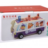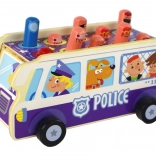 Odolný drevený policajný autobus na kolieskach poslúži ako zručnostná hra aj ako pojazdná hračka 2 v 1.