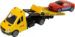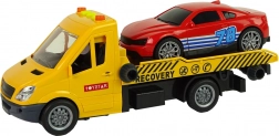 Vďaka frikčnému pohonu stačí vozidlo postrčiť a rozbehne sa vpred. V balení nájdete aj červené športové autíčko s modrými detailmi, ideálne na odťah do detského servisu. Hračka je vyrobená s dôrazom na odolnosť a bezpečnosť, spĺňa CE a normu EN 71, a je skvelým darčekom vďaka baleniu s priesvitným okienkom.