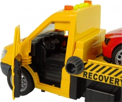 Vžite sa do role malého záchranára ciest. Odťahovka má otváracie dvere, zdvíhaciu rampu ovládanú kolieskom a výsuvnú návesovú časť s hákom pre jednoduché pripojenie a vytiahnutie autíčka. Integrované svetelné a zvukové efekty (klaksón, vyťahovanie s alarmom, cúvanie) dodajú hre na autentickosti.