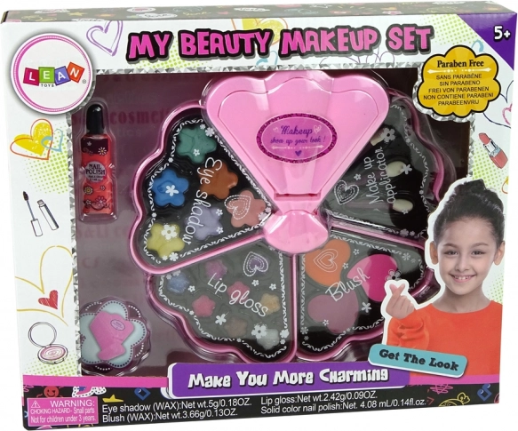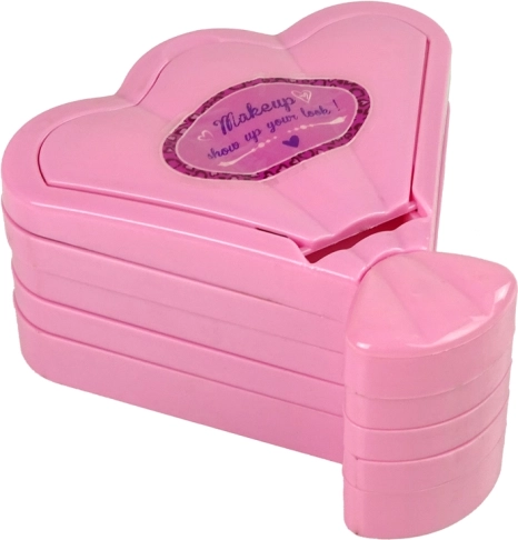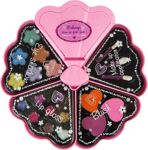 Táto kozmetická sada v tvare mušle je ideálna pre malé začínajúce vizážistky. Obsahuje šesť očných tieňov, tri tvárenky, osem leskov na pery, lak na nechty a štetce na aplikáciu. Každá vrstva skrýva unikátne kozmetické možnosti, ktoré umožnia dievčatám vytvoriť si vlastný štýl. Vďaka jej veľkosti je ľahké sadu mať stále po ruke.