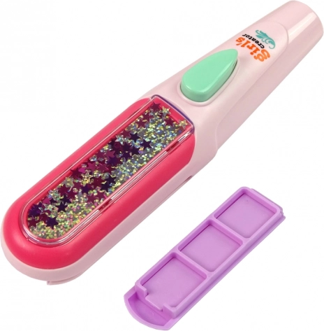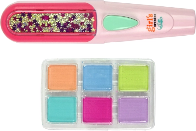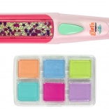 Nechajte svoju dcéru objavovať nové štýly prostredníctvom tejto súpravy na farbenie vlasov, ktorá zahŕňa všetko potrebné na dekoráciu vláskov. Priložená žehlička umožňuje jednoduché nanesenie farieb a vytváranie účesov, ktoré budú určite obdivovať všetky kamarátky v škole. Pre jednoduché použitie stačí vybrať tri farby, vložiť ich do aplikátora, nastriekať vlasy vodou a prejsť po nich žehličkou. Účes je hotový rýchlo a bez námahy!