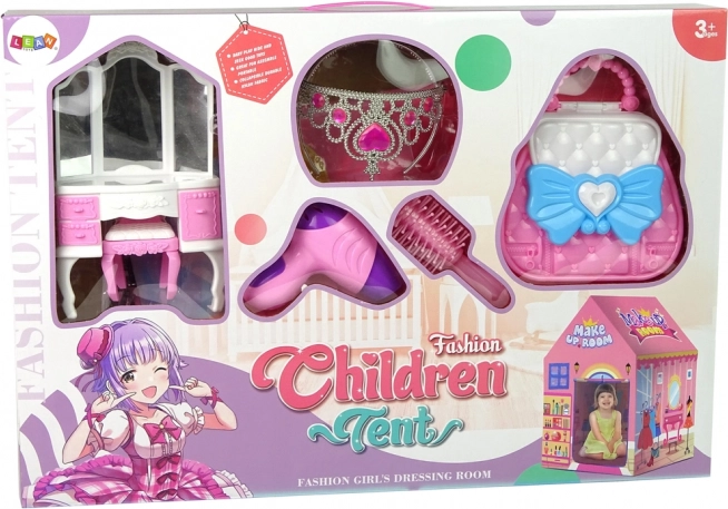 Detský ružový stan pre princezné je ideálne miesto, kde môžu malí dobrodruhovia rozvíjať svoju fantáziu. Tento stan prichádza so všetkými potrebnými salónnymi doplnkami, vrátane korunky a zrkadielka, čo deťom umožní ponoriť sa do sveta kúzla a zábavy.