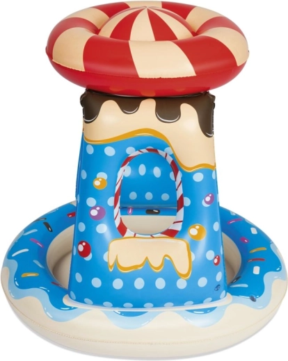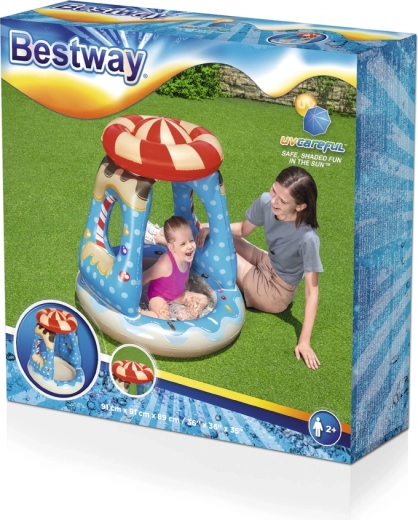 Roztomilý nafukovací bazénik s cukrárenským motívom a slnečnou clonou ponúka bezpečné vodné radovánky pre najmenších. Kompaktné rozmery, jednoduché nafukovanie a vypúšťanie, mäkké steny pre pohodlie a PVC odolné proti pretrhnutiu. Ideálny na horúce dni na záhrade či terase.