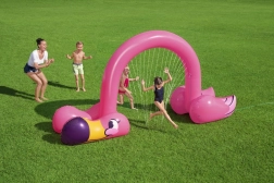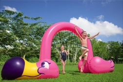 Táto veľká nafukovacia bránka so sprškami v dizajne plameniaka pripojiteľná na záhradnú hadicu vytvorí parádny vodný tunel, pod ktorým deti prebiehajú a nechávajú sa kropiť jemnými tryskami. Vďaka výške 1,93 m sa do hry môžu zapojiť aj dospelí.