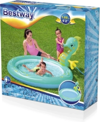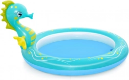 Nafukovacie detské vodné ihrisko BESTWAY v morských farbách ponúkne bezpečné osvieženie aj kopec zábavy v horúcich dňoch. Plytký bazénik a priateľský motív morského koníka s vodnou sprškou lákajú ku hre a jemnému osvieženiu, takže sa skvele hodí pre najmenších od 2 rokov.