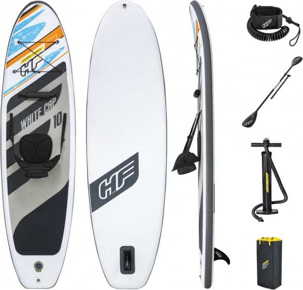 Hydro-Force White Cap je mimoriadne všestranná nafukovacia doska na paddleboarding, ktorá si vďaka odolnému materiálu a štýlovému dizajnu ľahko získa srdcia všetkých vodných nadšencov. Súčasťou je pohodlné sedadlo s možnosťou premeny na kajak.