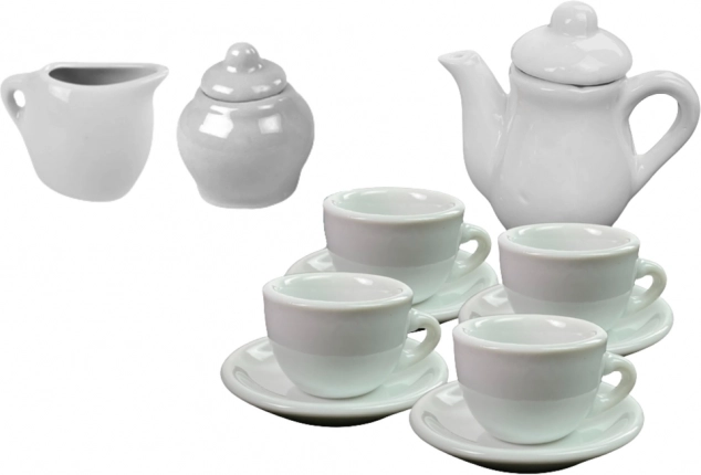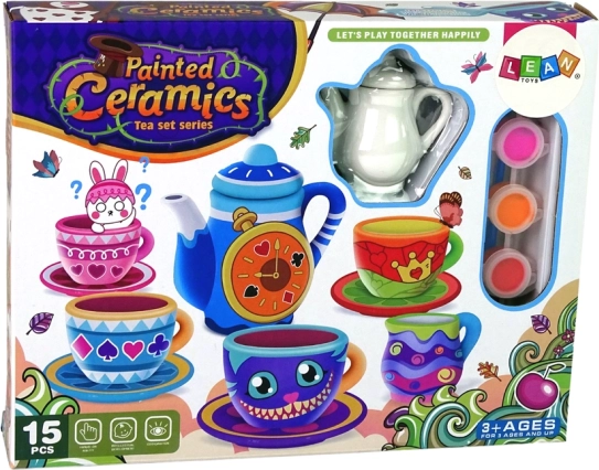 Súprava obsahuje všetko potrebné na zdobenie porcelánového čajového servisu - od kanvice po šálky a tanieriky. Deti môžu zdobiť servis vlastnými vzormi a obrázkami, čo im umožňuje plne využiť ich fantáziu. Každý kus servisu sa tak stáva unikátnym umeleckým dielom.