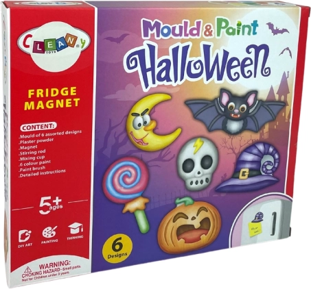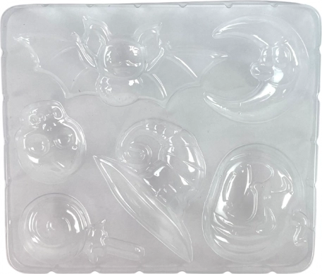 Súprava obsahuje rôzne formy s motívmi ako sú netopier, lebka, tekvica alebo mesiac. Perfektná pre halloweensku dekoráciu!