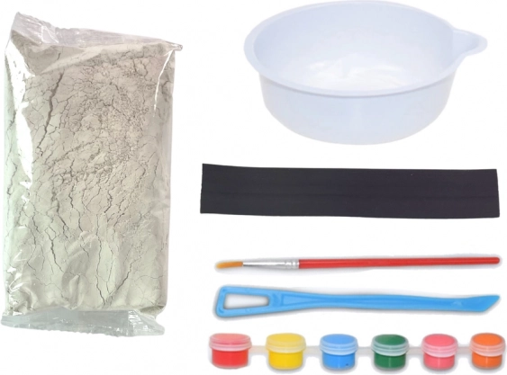 Súprava obsahuje sadru, mísu na miešanie, magnet, štetec, nástroje na modelovanie a farby, takže máte všetko, čo potrebujete.