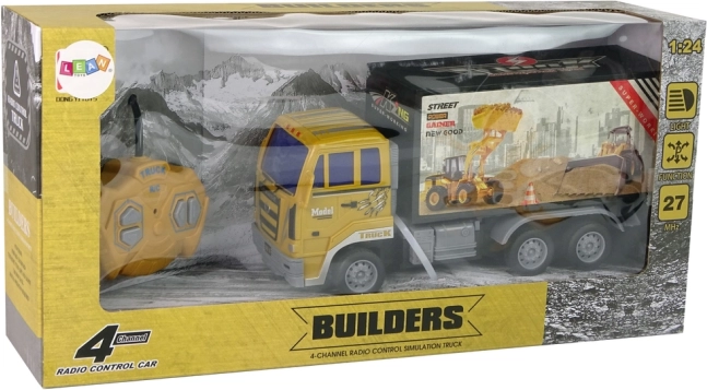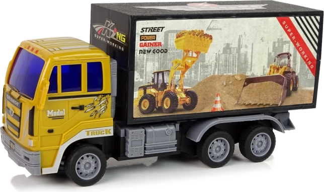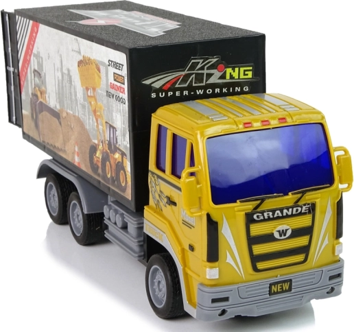 Žltý diaľkovo ovládaný stavebný kamión prináša deťom možnosť ovládať vlastný stavebný stroj. S čiernym kontajnerom a výraznými nálepkami je tento model autentický a dieťaťu umožňuje simulovať reálne stavebné prostredie. Ovládanie na 27 Mhz dovoluje pohyb vpred, vzad, doľava a doprava, doplnený svetelnými efektmi, ktoré zvyšujú zážitok z hry.