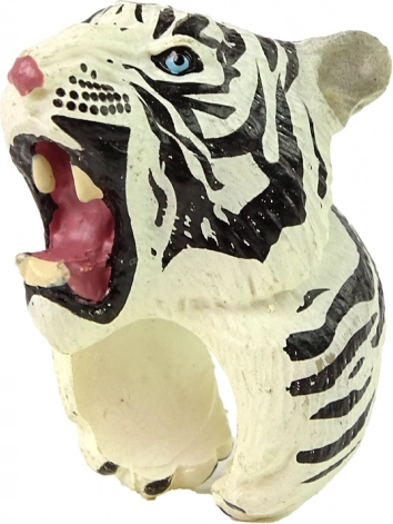 Roztomilý prsteň s motívom bieleho tigra prináša deťom zábavu aj učenie hrou. Detailne spracovaná hlava tigra s modrými očami a pruhmi je maľovaná netoxickými farbami, takže je bezpečná pre deti. Skvelé ako kostýmový doplnok, rekvizita pre malé predstavenia aj ako darček pre milovníkov zvierat.