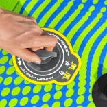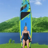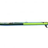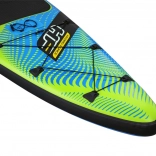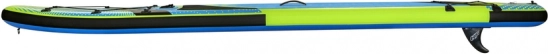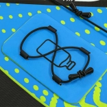 Doska je pripravená na použitie – v balení nájdete nastaviteľné pádlo, ručnú pumpu s manometrom, špirálový leash, odnímateľnú stredovú plutvu a odolný transportný batoh. Praktické bungee lanká na prove bezpečne podržia výbavu, nechýba ani držiak/úchytná gumička na fľašu.