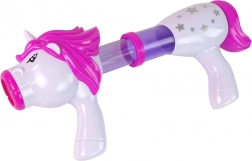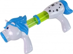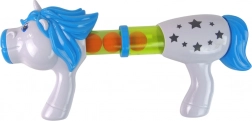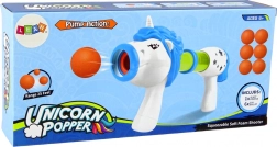 Rozkošná pištoľ v tvare jednorožca prináša veľa radosti a bezpečnej akčnej zábavy. Stačí vložiť penovú guľôčku do priehľadného zásobníka a pohybom vpred–vzad napumpovať vzduch – guľôčka potom vyletí z tlamy jednorožca. Mäkké penové náboje sú šetrné a vhodné na detskú hru.