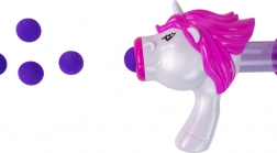 - 1× pištoľ v tvare jednorožca, 6× mäkká penová guľôčka