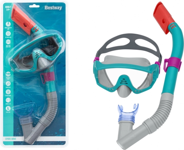 Súprava na šnorchlovanie BESTWAY pre mládež a dospelých od 14 rokov kombinuje pohodlnú masku a šnorchel pre bezpečné objavovanie pod hladinou. Mäkké silikónové tesnenie a nastaviteľný remienok zabezpečujú dokonalé priľnutie bez presakovania, odolný zorník s UV filtrom chráni oči a šnorchel s mäkkým náustkom a ochranou proti vniknutiu vody uľahčuje dýchanie. Ľahká, farebne atraktívna súprava je ideálna na dovolenku aj do bazéna.
