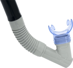 Šnorchel s hornou ochranou proti striekajúcej vode a flexibilnou časťou pre prirodzenú polohu a pokojné dýchanie.