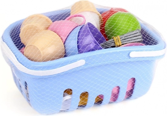 Táto detská pikniková sada v nákupnom košíku ponúkne všetko, čo malí hostitelia potrebujú na „popoludňajší čaj“ s kamarátmi. Nájdete v nej džbán s viečkom, štyri šálky s podšálkami a lyžičkami, taniere, sladké dezerty aj výber farebného plastového ovocia – ideálne na hranie doma aj na záhrade.