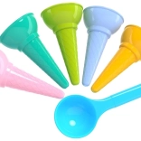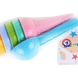 Premeňte piesok na malú zmrzlináreň! Táto sada farebných formičiek na zmrzlinové kornútiky s naberačkou prináša hodiny tvorivej zábavy na pláži aj v pieskovisku. Obsahuje 5 kornútikov + naberačku z odolného plastu bez zápachu v pastelových farbách. Vhodné pre deti od 1 roka, spĺňa certifikáciu CE.